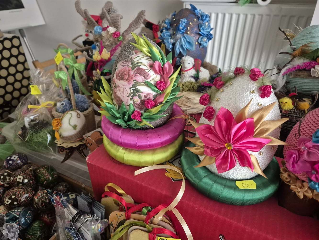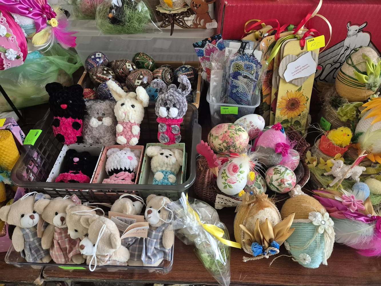 Nasze Panie włożyły w przygotowanie kiermaszu mnóstwo pracy, zaangażowania i serca. Powstały niepowtarzalne stroiki wielkanocne, ozdoby, pluszaki, małe dzieła sztuki, które zachwycają pomysłowością i oryginalnością. Każda praca jest wyjątkowa i wykonana ręcznie.