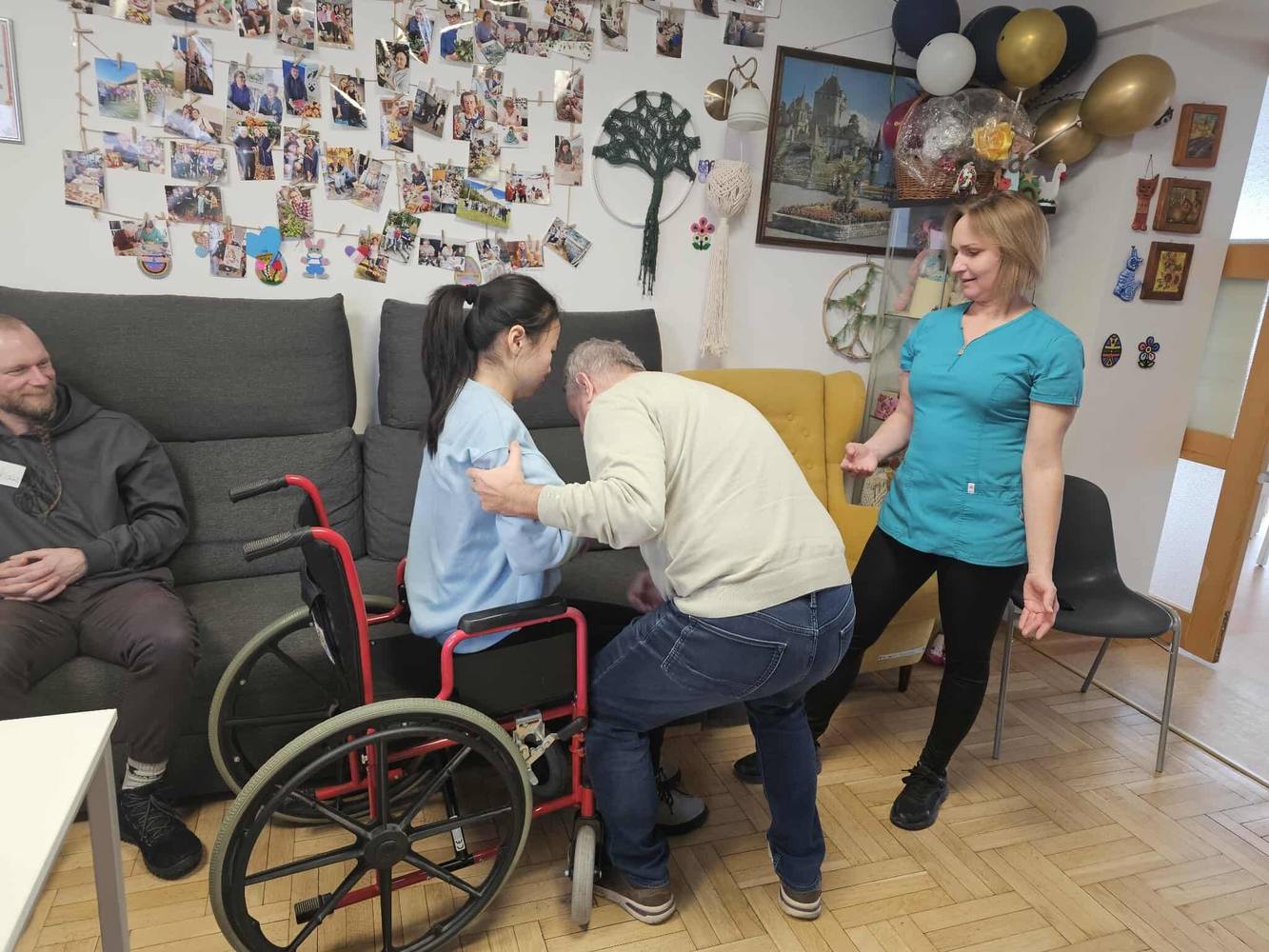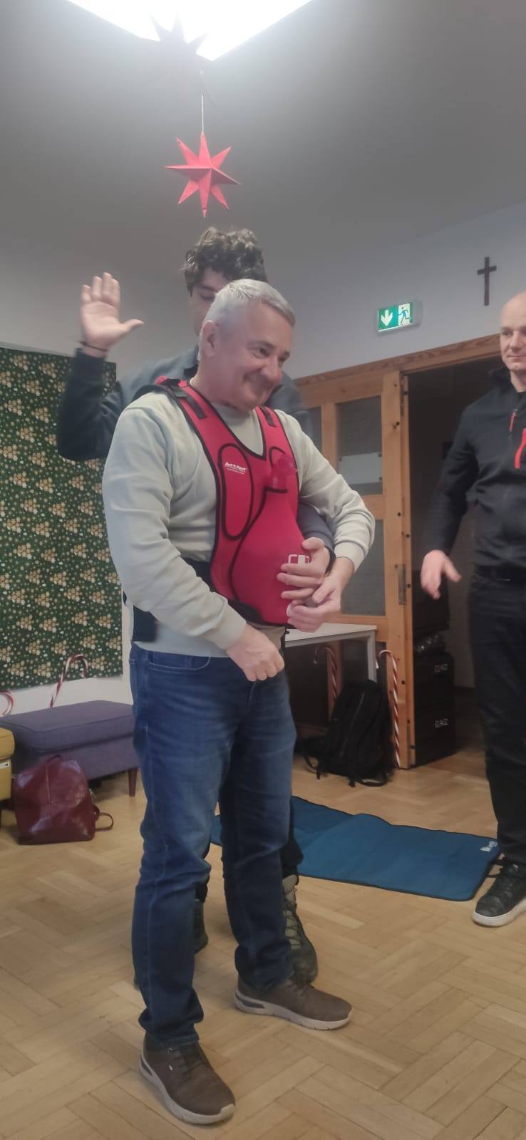 🎓obsługi sprzętu i bezpiecznego wsparcia ruchowego – pod okiem fizjoterapeutki uczyliśmy się m.in. prawidłowej pomocy przy wstawaniu, asekuracji i transferze osób z ograniczoną mobilnością